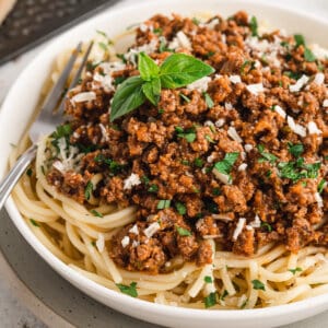 - Other ground meat options. This sauce will work with all ground beef or a 50/50 combination of ground beef and ground pork. You could also swap the beef with ground turkey, but note that it’s a leaner meat and the sauce also won’t be as flavorful.