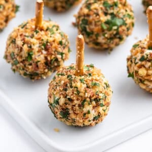 This cheese balls appetizer pairs well alongside these mini tortellini kabobs or as part of an anitpasto charcuterie board.