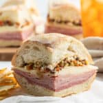 This classic New Orleans Muffuletta sandwich features sturdy bread, zesty olive salad, and layers of Italian cold cuts and cheese. I love its impressive size, appearance, and unique flavor that make it a force in the sandwich world.