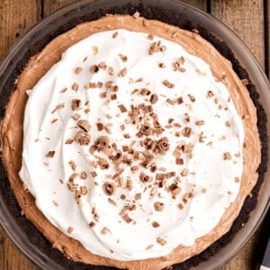 This easy chocolate pie makes a great addition to a holiday spread, right next to classics like apple pie and pumpkin pie too.
