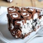 This no-bake Cookies and Cream Swiss Roll Cake is the ultimate treat with layers of sliced Swiss Rolls and a creamy Oreo cheesecake filling.