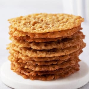Unlike many soft and chewy cookies, lace cookies are meant to be thin, brittle, and crispy. They taste like butterscotch and melt in your mouth, wonderful with a cup of tea and beautiful on cookie platters.