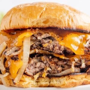 These Oklahoma Smash Burgers are thin burger patties smashed over sliced onions, topped with melty cheese. They’re super quick to prepare and cook up in minutes until the edges are crisp and the center remains juicy. Serve on buns with your favorite toppings for an easy lunch or dinner.