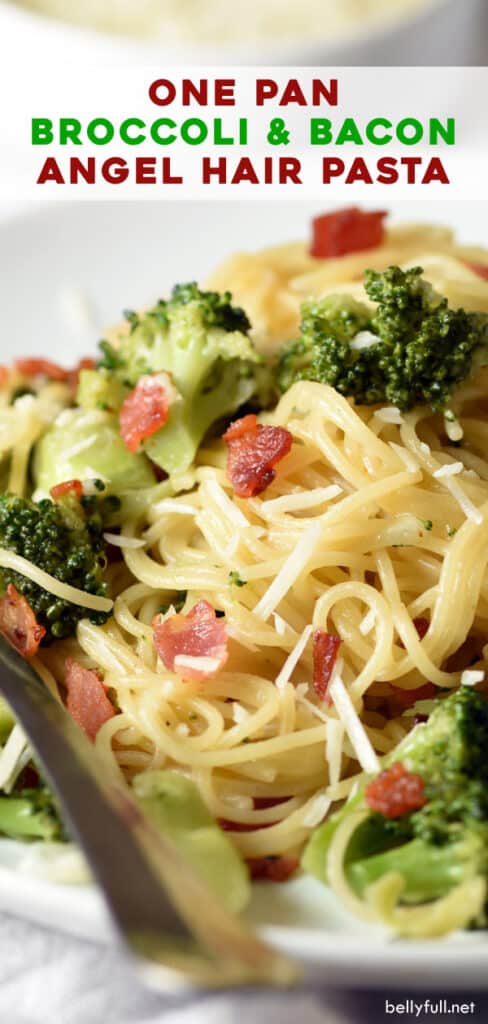 - Use angel hair pasta – You’ll need uncooked angel hair pasta, broken in half. If you use a different pasta, the broth and cooking time will need to be adjusted which might overcook the broccoli.