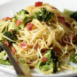 We love this bacon and broccoli pasta recipe so much, it graces my dinner table several times a month.