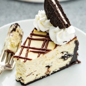 This Oreo Cheesecake recipe is rich, creamy, and absolutely delectable. I used Oreo cookies in the crust and folded them into the luscious cream cheese filling, and then baked and topped the cake with chocolate ganache and homemade whipped cream. It’s truly what cookies and cream dessert dreams are made of!