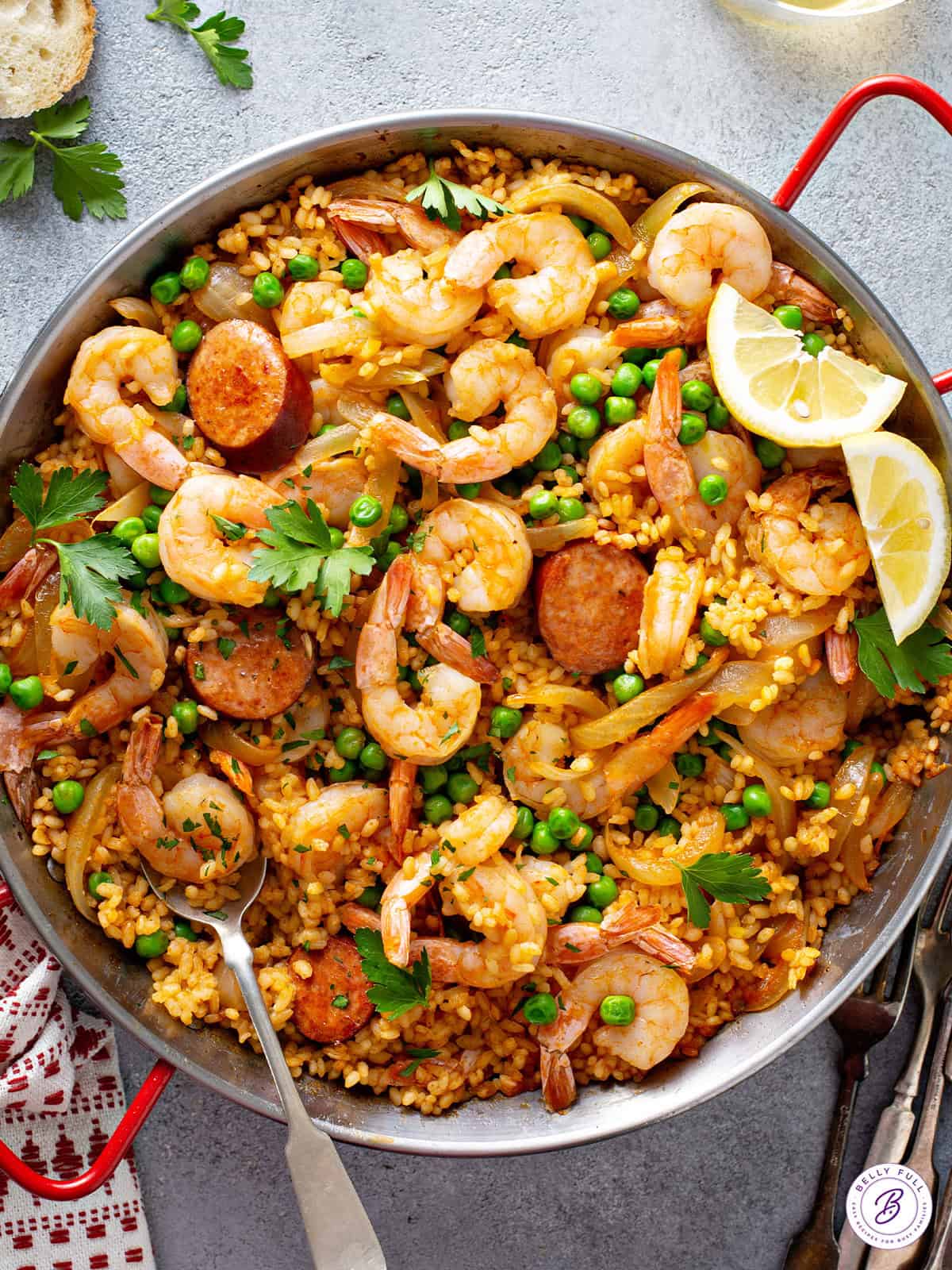 This simple Spanish Paella recipe delivers amazing flavor from chorizo, shrimp, and traditional paella ingredients. It’s quick and easy enough for a weeknight family meal, but impressive enough for dinner guests!