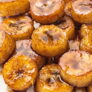 I like to enjoy these caramelized bananas on their own, over ice cream for a dessert, or with cottage cheese or ricotta cheese for a healthy, high-protein treat. I think they’re also amazing on top of crepes or pancakes.