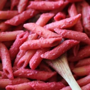 Pasta coated in a creamy beet sauce made with balsamic vinegar, wine, thyme, and sweet roasted beets! It’s so easy and absolutely delicious!