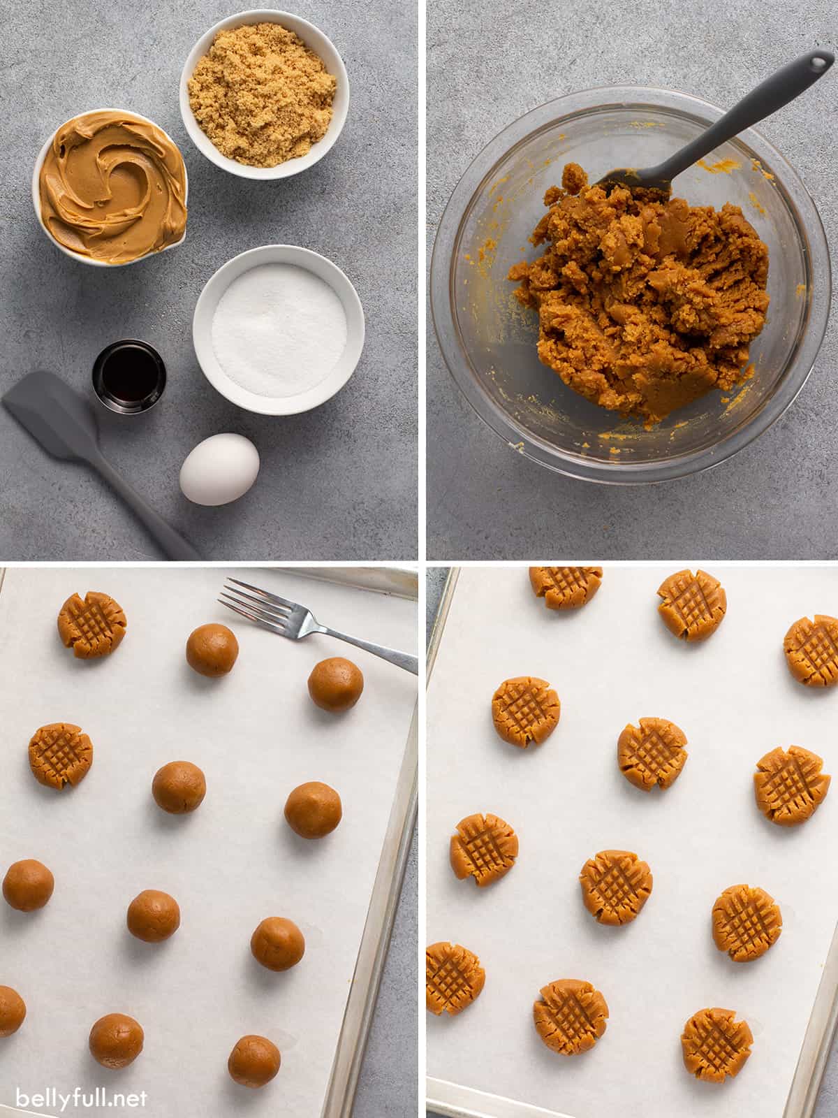 - Don’t skip the fork marks. Peanut butter cookie dough is dense. By pressing the cross-hatch pattern on the dough balls, it flattens them and allows for more even baking. They will cook unevenly if you skip this step. Plus, they look neat!
