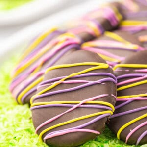 - Candy melts – For decorating your peanut butter eggs. I went with pink, yellow, and purple but feel free to use any colors you want. Or simply omit.