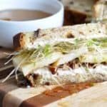 These sandwiches are best served right after assembling or at least within a couple hours. Do not make them ahead of time. The longer these sandwiches sit, the pears will release moisture causing the sandwiches to get soggy.