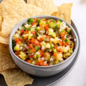 Pickle de Gallo can be served right away or stored (covered) in the fridge for later. It’s best enjoyed at room temperature, though, so if you won’t be eating it right away, let it sit on the counter for 30 minutes or so before serving. Use a slotted spoon to avoid accumulated juices on the bottom of the bowl. Leftovers should be stored in an airtight container in the fridge and eaten within 4 days.