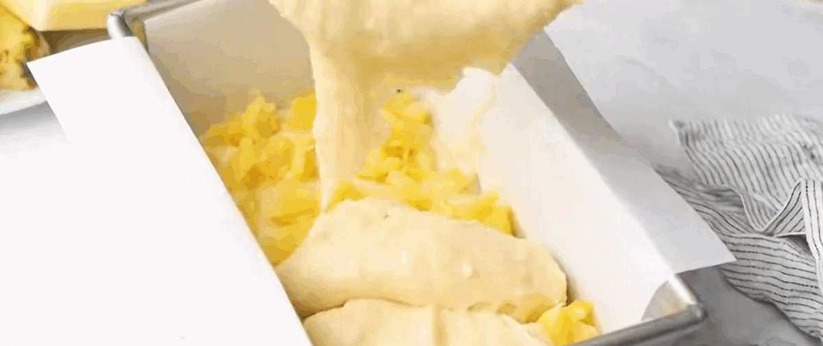 - Pour half of the batter in the prepared pan, tapping it on the counter to evenly spread it out. Scatter half of the pineapple over the top.