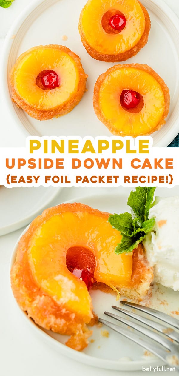 We always do the typical hot dogs and sโmores, but this year Iโm all about foil packet recipes. Theyโre so easy to pack, prepare, and cook. I gave this Pineapple Upside Down Cake recipe a trial run. Four times. Obsessed!