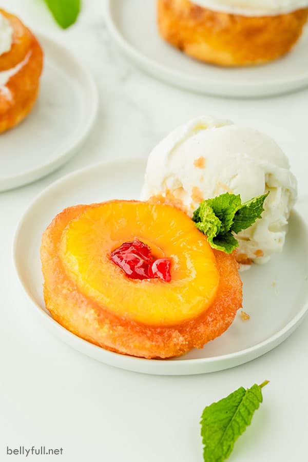 - Serve. To serve, flip the cakes over. Top with a scoop of vanilla ice cream and enjoy!