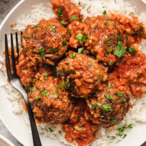 I typically serve these porcupine meatballs over cooked white rice with a dollop of butter, which is similar to how they were originally served. However, they’re also great over egg noodles or mashed potatoes, if preferred. If you want to add a veggie side, a side salad or roasted broccoli would be great.