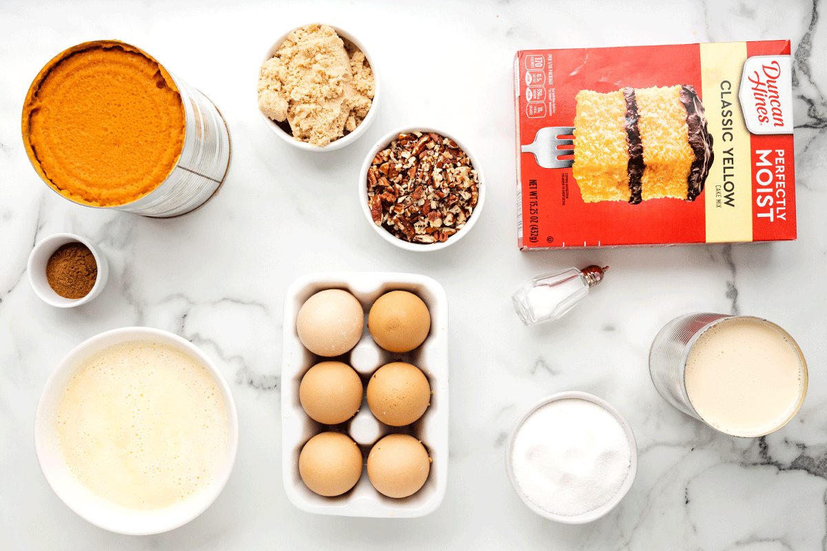 This is a delicious recipe and easy to follow. I made the pumpkin dump cake the night before Thanksgiving! My oven took about 1 hour and 20 minutes to bake. I let cool a couple hours and put it right straight in the refrigerator. Everyone enjoyed it and l had some later that night with ice cream. Yum! The only ingredient l omitted was pumpkin spice. Still delicious!