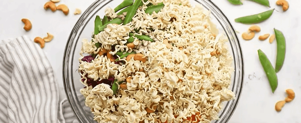 - Dry Ramen. The ramen noodles do not get cooked. Instead, they get smashed into small pieces and then added to the salad. You can buy any flavor because the spice packet is not used.