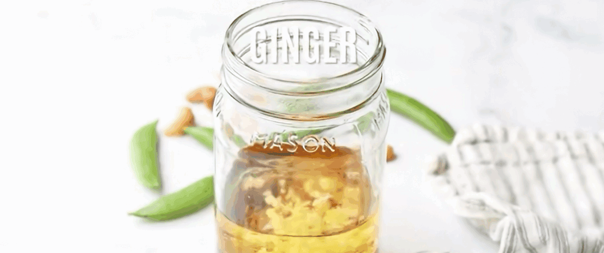 - Pour vegetable oil, rice vinegar, sugar, soy sauce, sesame oil, garlic, and ginger in a jar. Seal tightly with a lid and shake to thoroughly combine.