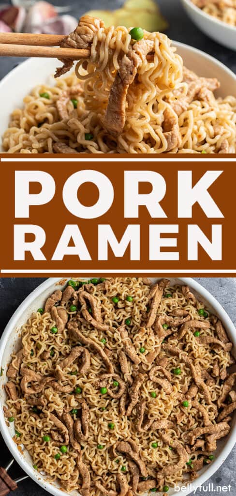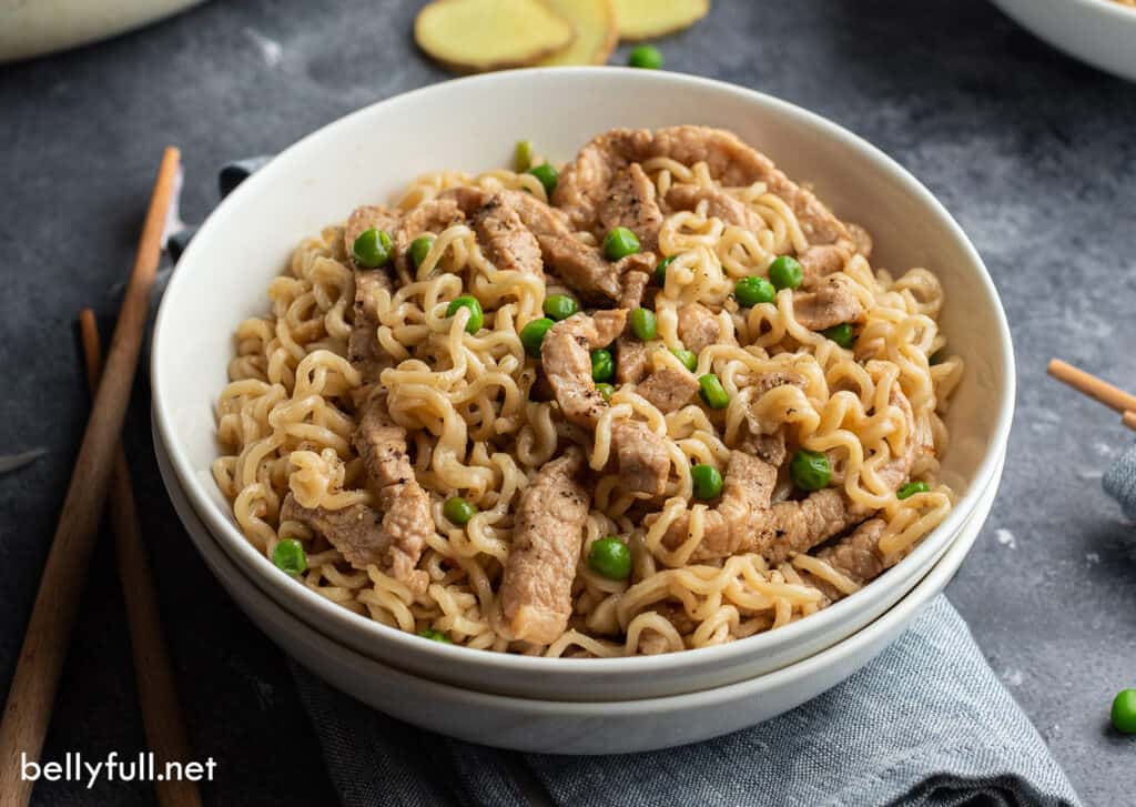 Forget whatever negative connotations you have toward Ramen noodles – this is nothing like what you lived off of during your college years. We’re tossing out the spice packet and replacing it with fresh aromatics, combined with tender slices of pork loin and sweet baby peas, all coated in a flavorful sauce. It’s so delicious!