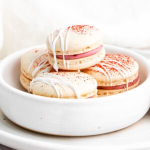 With a raspberry cream filling and delicate crisp outer shell, I find these Raspberry Macarons surprisingly easy to make. The recipe requires just 7 ingredients and a bit of patience. If you’ve never made French macarons before, I think this is a great recipe to start with!