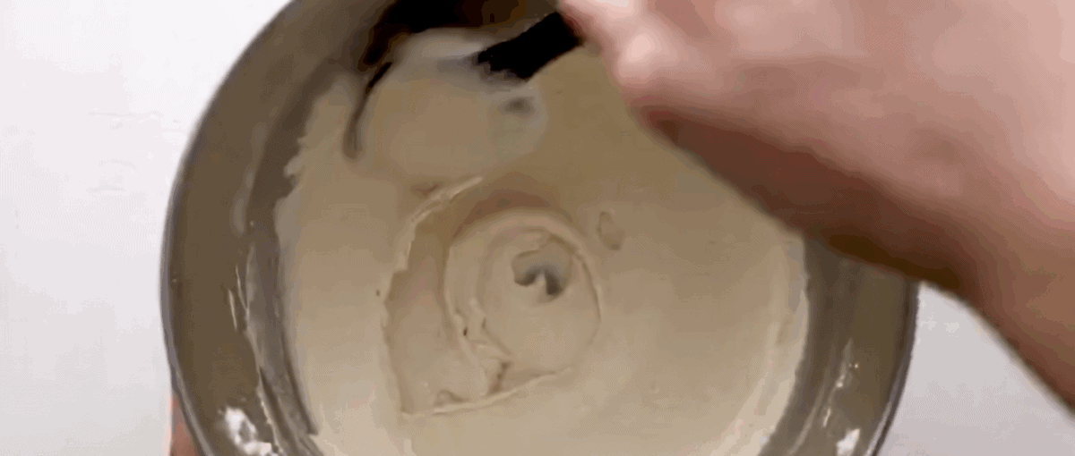 - When all of the dry ingredients have been fully mixed, smush the batter against the sides of the bowl and fold it back together. Repeat the smush-and-fold process 4-5 more times. Again, make sure to scrape all the way to the bottom of the bowl so you don’t end up with lopsided macarons.