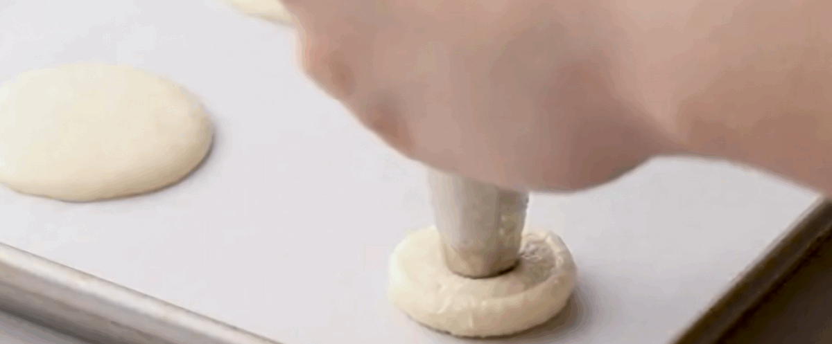 Pipe: Pipe 1.5” macarons onto the tray—make sure to leave about 2″ in between each one. Holding the piping bag perpendicular to the tray will ensure you have even and round macarons.