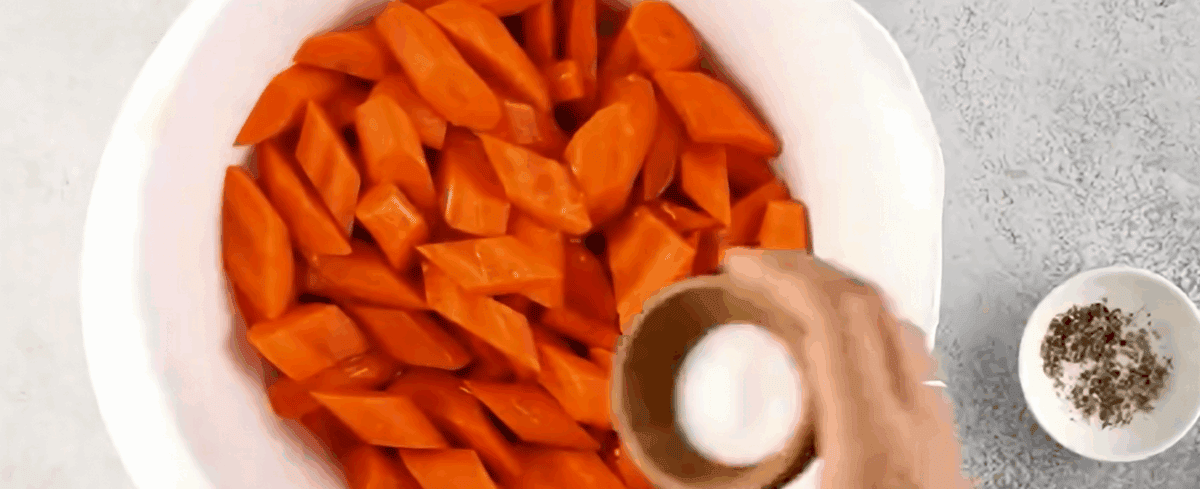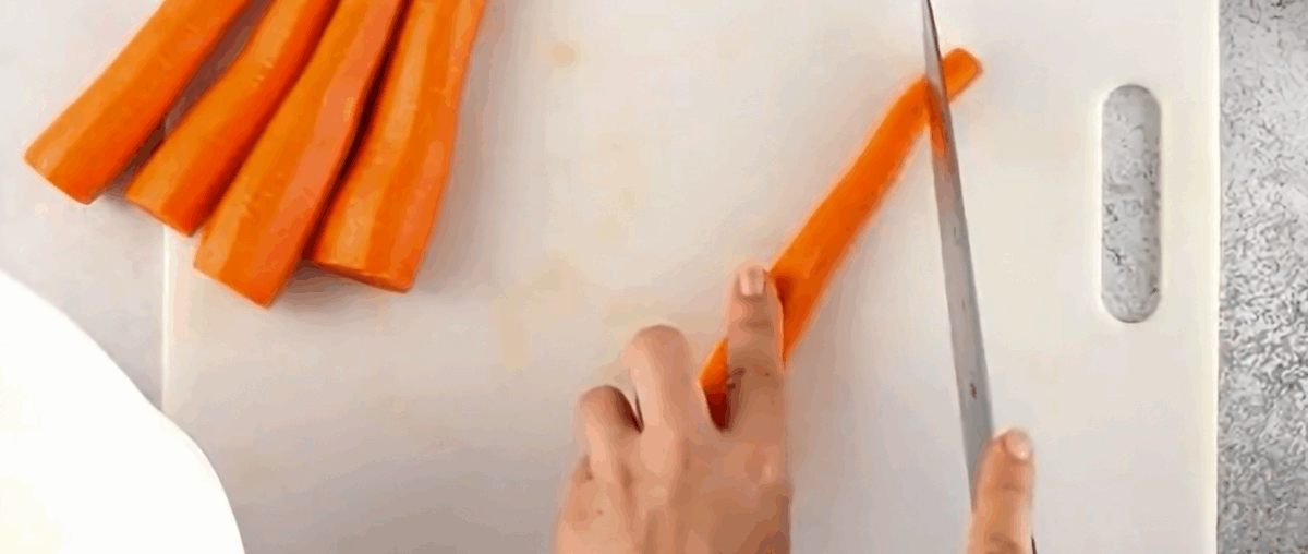 - Cut the carrots and preheat the oven: Preheat the oven to 400ยฐF. Peel and cut the 12 carrots. If the carrots are thick, cut them in half lengthwise; if not, leave them whole. Slice the carrots diagonally into 1ยฝ-inch-thick slices.