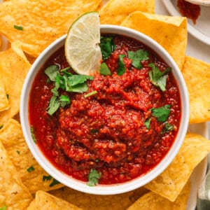 This quick and easy Salsa Roja recipe is the best Mexican condiment made with fresh ingredients and wonderful aromatics. It’s so flavorful and gorgeous, and the perfect addition to enchiladas, tacos, burritos, fajitas, and more!