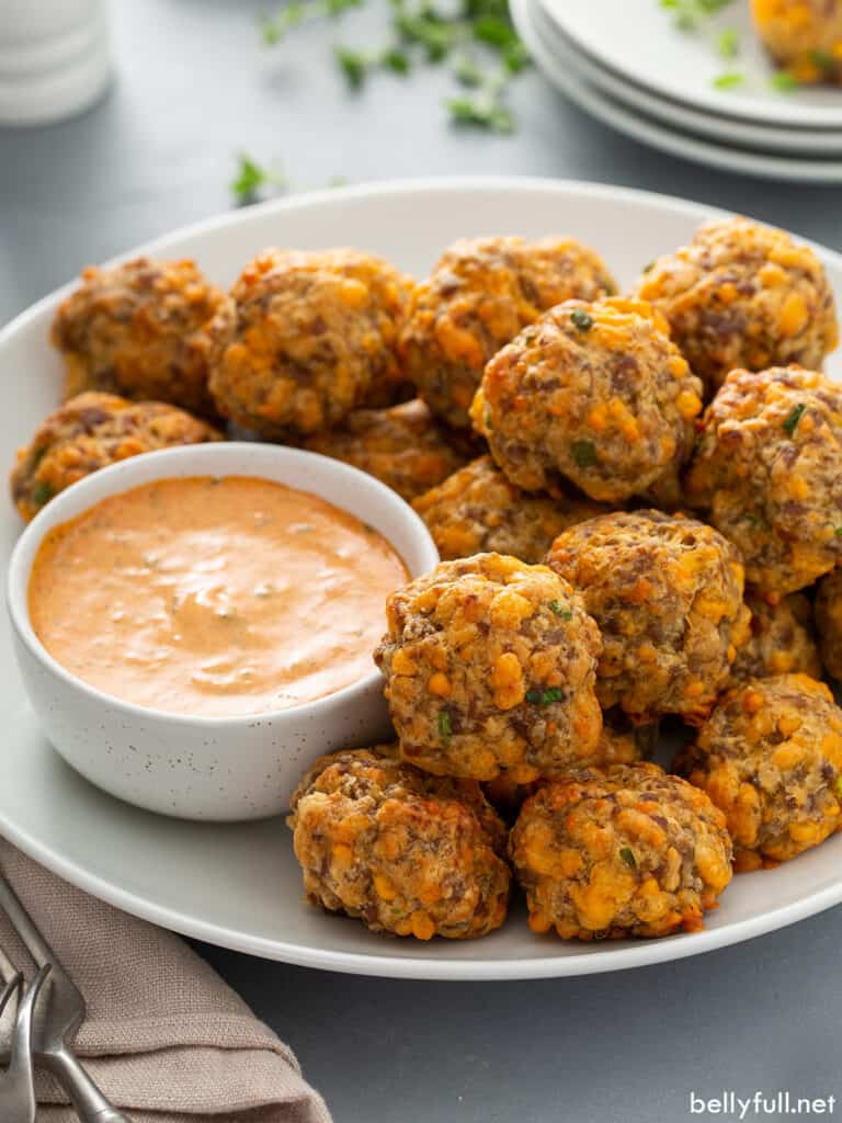 My go-to sausage ball dip for this recipe is my homemade remoulade sauce recipe. It’s quick and easy to make and the flavors work so well with the Cheddar Bay mix.