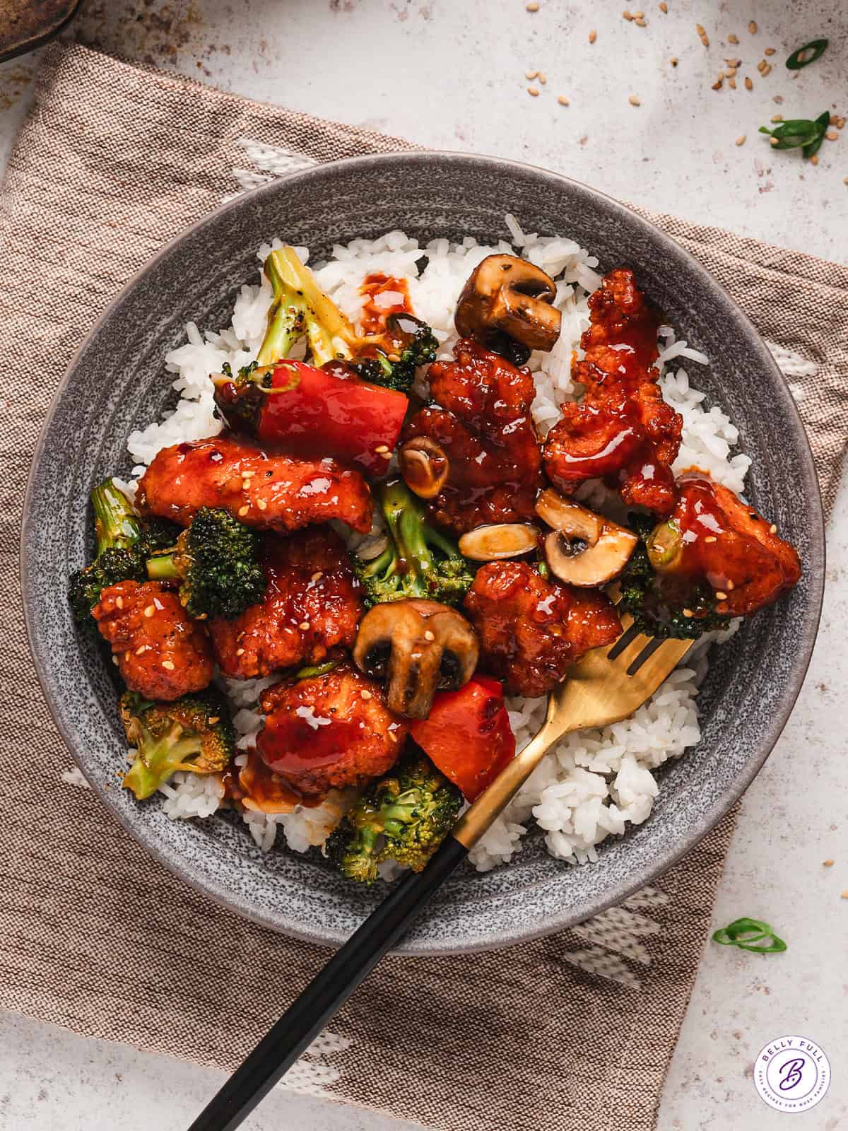 - Customize the veggies used. General Tso’s chicken is typically prepared with broccoli. I also added peppers and mushrooms to add some variety. Feel free to also add onions, cauliflower, or other veggies as desired.