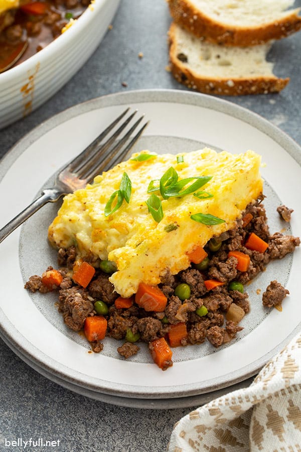 Because of the meat filling loaded with vegetables and the layer of mashed potatoes, this dish is pretty substantial and filling on its own, but I often serve it with Popovers or Irish Soda Bread. A simple side salad or fried cabbage also round out the meal.