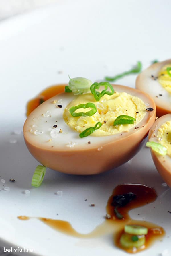 Soy sauce eggs are now a go-to recipe that I make over & over. Great flavor in just a couple of hours. I usually substitute thinly sliced white onions for the scallions & they give it a nice crunch. So good!