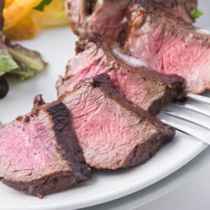 You can serve the steak whole or serve or thinly sliced. We enjoy ours with a dab of butter and a sprinkle of fresh chopped parsley. Though those additions are optional, they elevate and complement the other flavors of the dish.