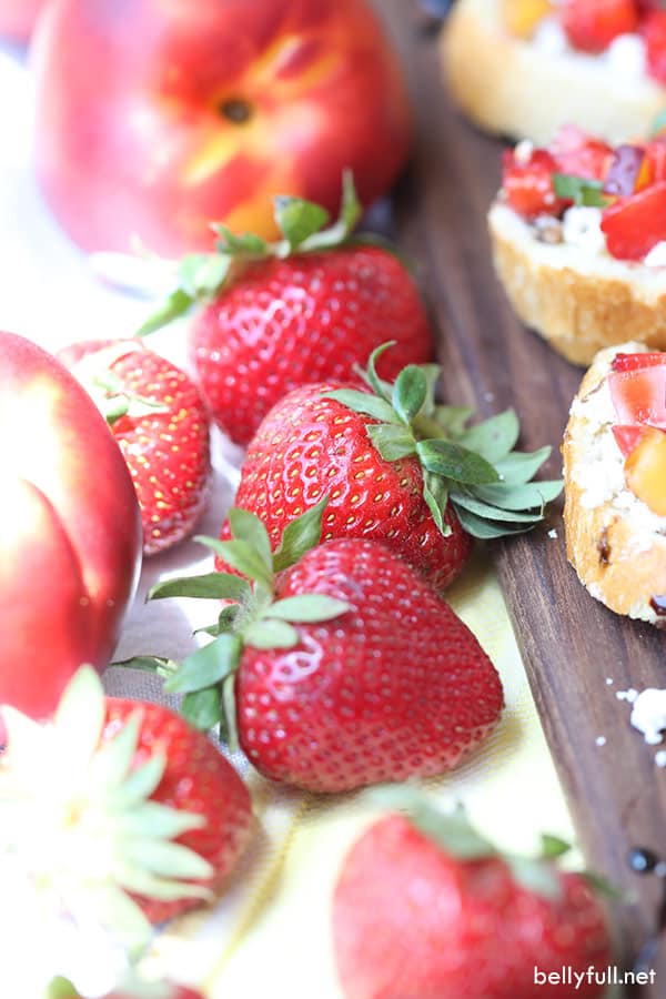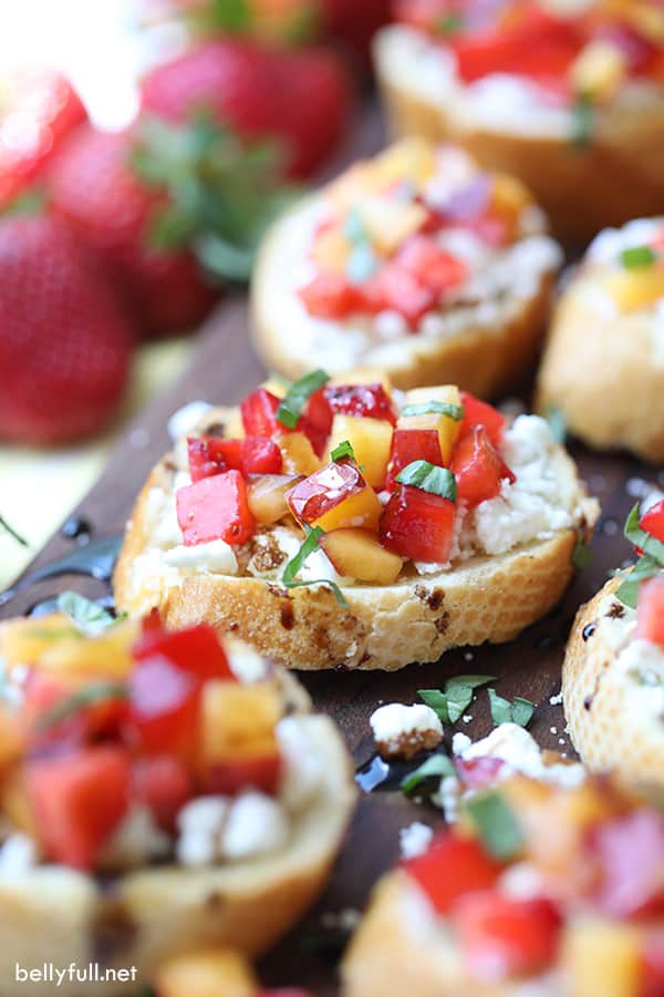 This fresh fruit bruschetta is made with fresh diced strawberries and nectarines. It just screams summer – you will love it!