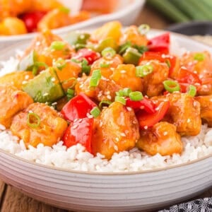 This easy homemade Sweet and Sour Pork recipe is a fantastic substitute for your favorite Chinese restaurant takeout. Sweet, sour, savory, and a bit crunchy, this is a great dinner for any weeknight and is made in practically the same amount of time it would take for delivery.