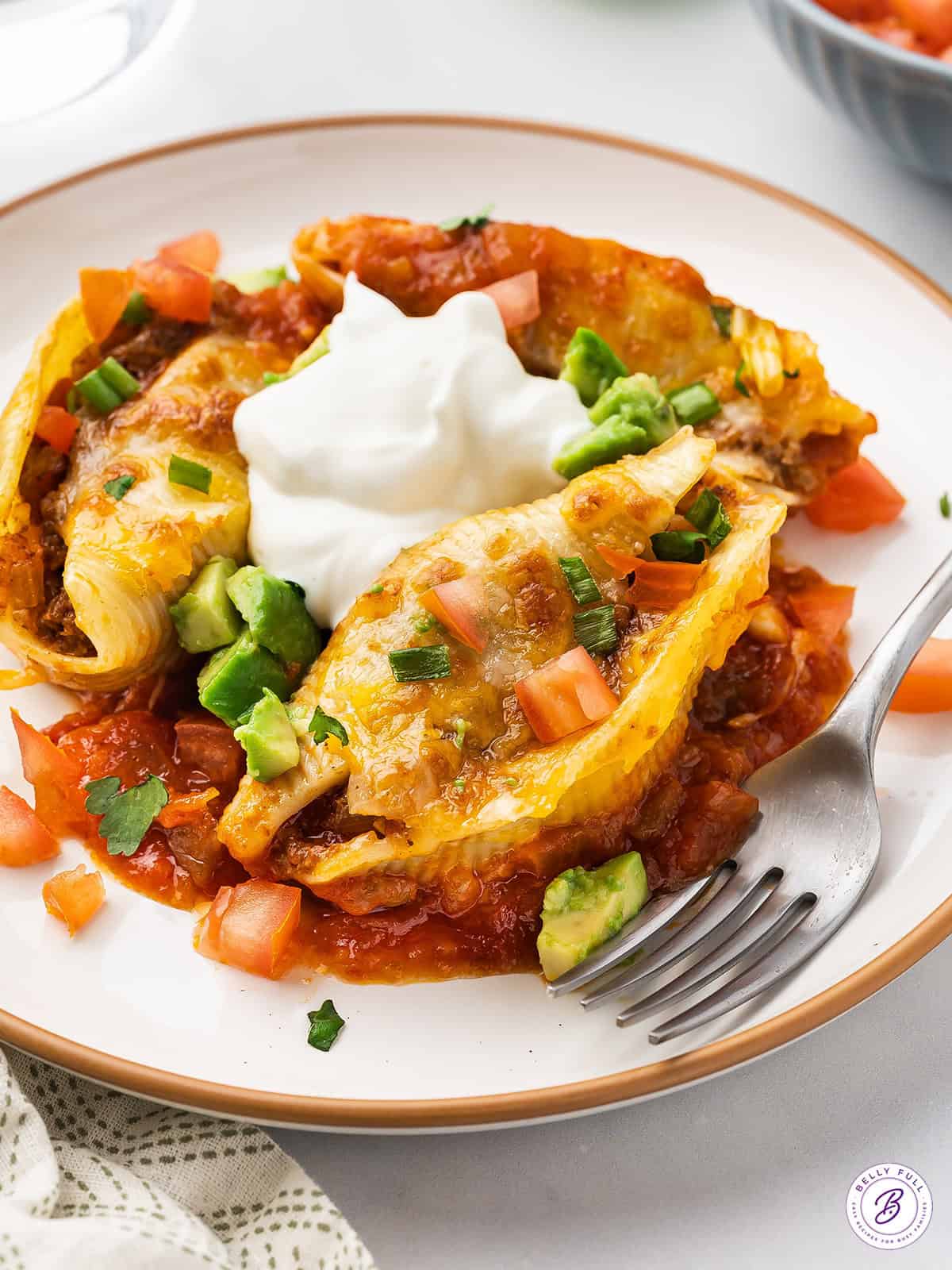 Just like tacos, you can serve these stuffed shells with your favorite toppings like cilantro, diced avocado, sour cream, Pico de gallo, and guacamole. To round out the meal, the stuffed shells also pair well with a side salad.