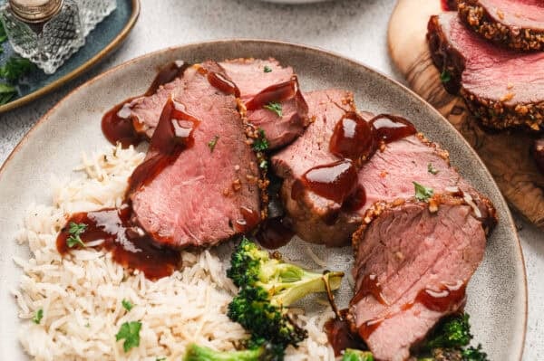 This tri-tip recipe is so simple with a 2-ingredient sweet and tangy glaze and a layer of dried garlic, yet it’s so incredible. I’ve often joked that if I had to choose a last meal on earth, it would be this tri tip, along with the rice pilaf and roasted broccoli. I would die happy.