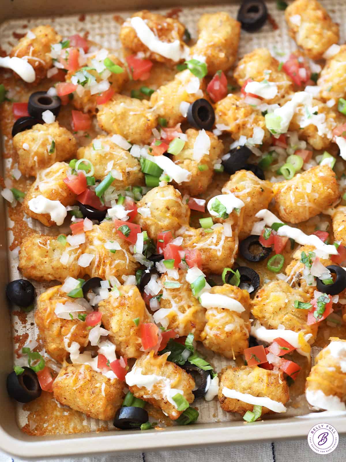 Why tater tots get a bad rap from some people alludes me. They’re basically shredded hash browns all in a crispy tiny package. My family loves them. They’re so great in funeral potatoes, freezer breakfast burritos, a tater tot breakfast casserole, and these Totchos!