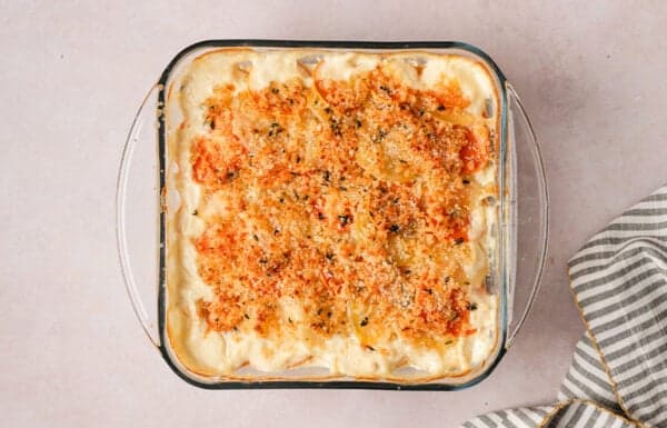 - Let rest 10 to 15 minutes before cutting. This gives the cream sauce time to settle and thicken a bit and will make it easier to serve.